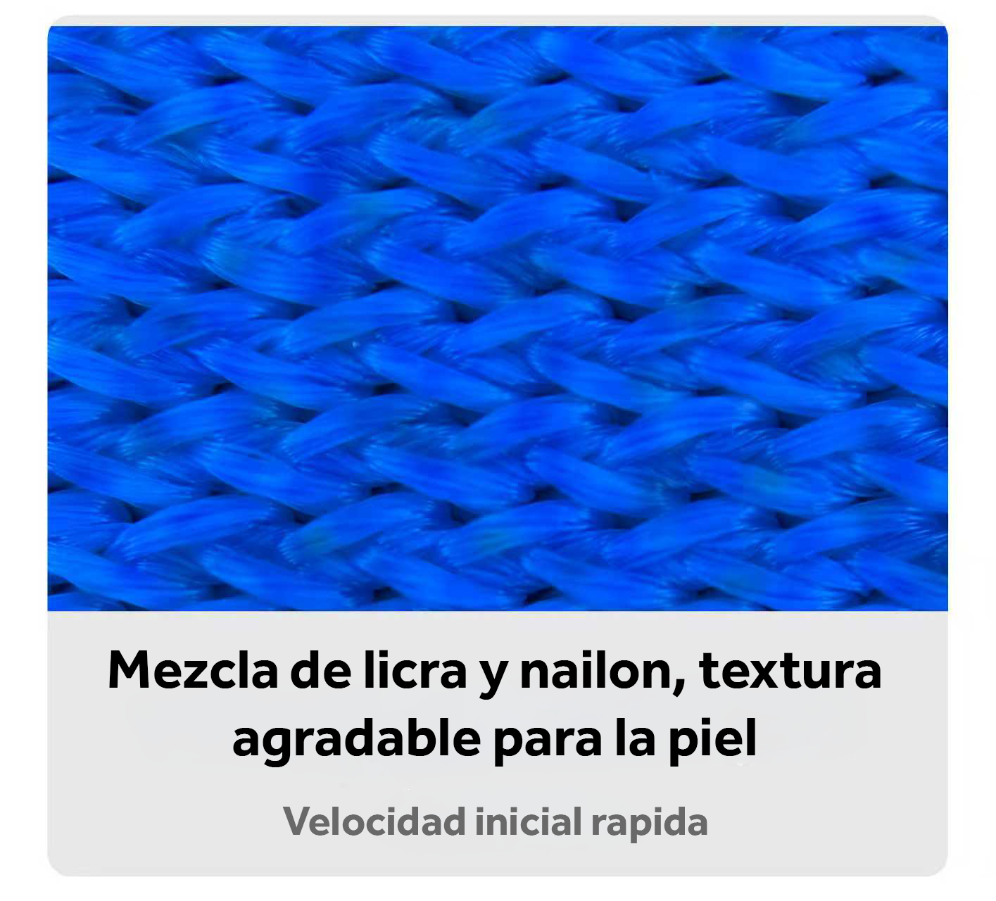 Base antideslizante: Licra y nailon que entrega una textura suave con la piel y alta durabilidad.
